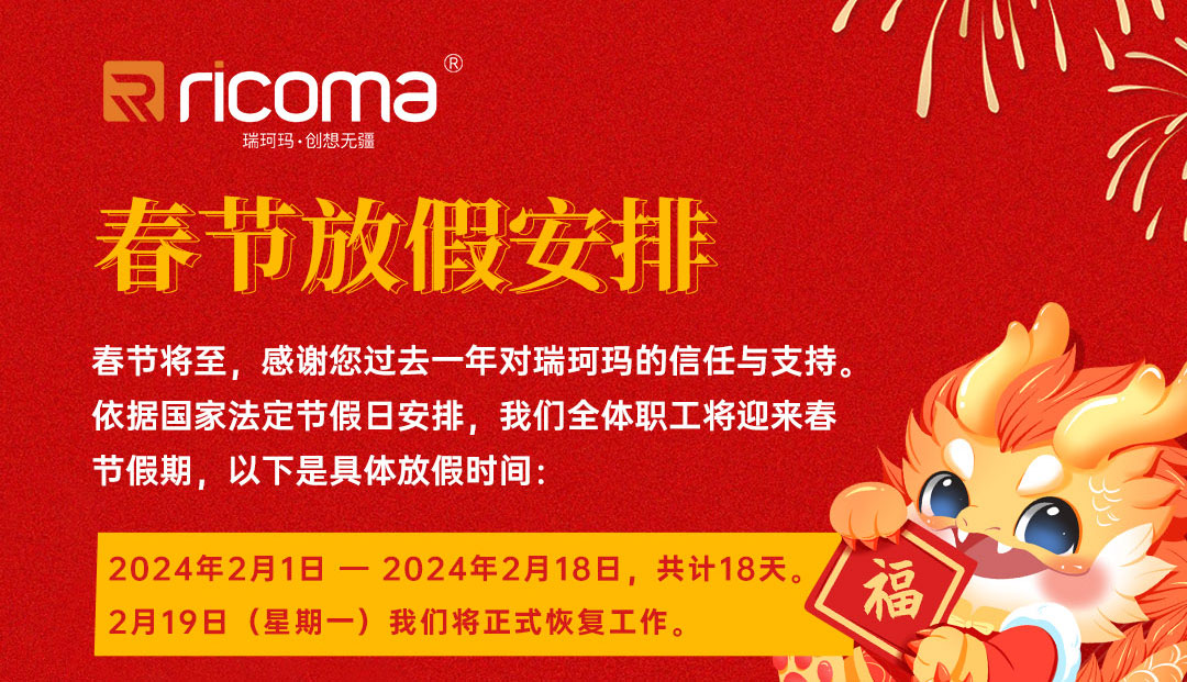 春節將至,感謝您過去一年對瑞珂瑪的信任與支持,中國公司全體員工將迎來春節假期,祝您假期愉快、闔家幸福!