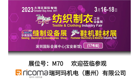3月16日—18日,大灣區國際智能紡織制衣工業設備展將在深圳國際會展中心舉行,瑞珂瑪參展